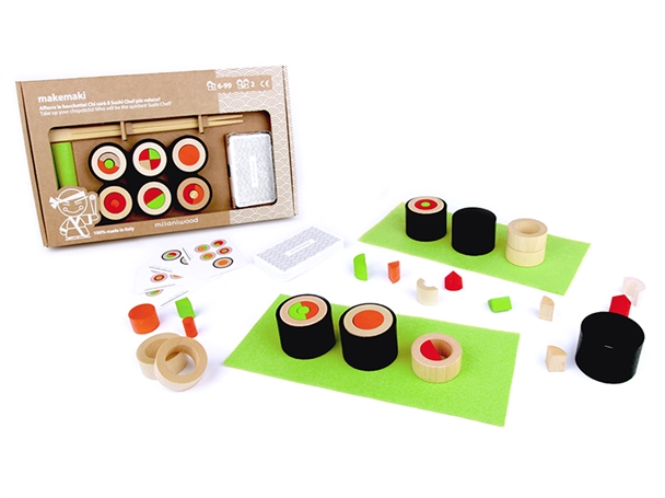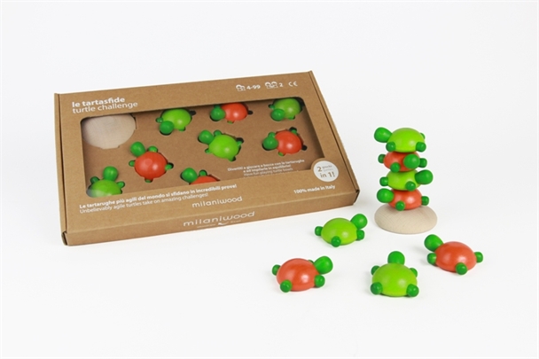 Gli appassionati dei giochi di società non potranno resistere ad Affettacarote, Brucovolante, Ruba Colore, Le Tartasfide, Makemaki e Palazzo Pazzo,  sei coloratissimi kit di costruzioni in legno dipinte con colori atossici contenuti in scatole realizzate completamente in cartone riciclato, perfetti per un pomeriggio divertente in famiglia.